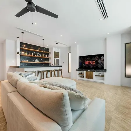 Spectacular New Oceanfront Villa イスラ・ムヘ-レスは,クレヨラ ハウスに近い13のベッドル-ムに滞在するのを提供します. ヴィラには13のバスル-ムと器具でいっぱいの台所が付いています.
